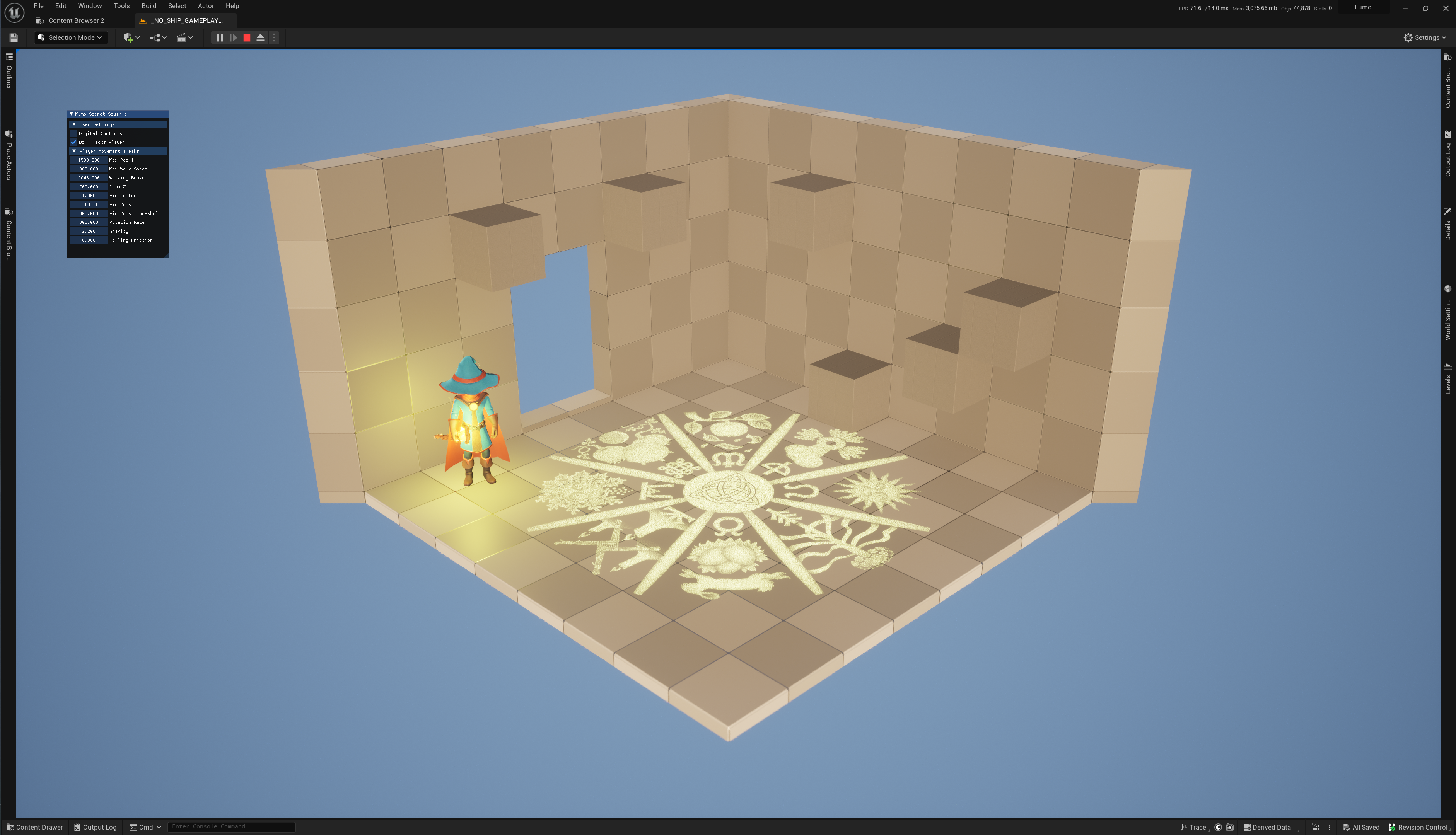 Like the first game, the Wand won't be a default item, it'll be a collectable. To support this, I added code to track which items are collected, and a way to bounce this back to the Game Instance