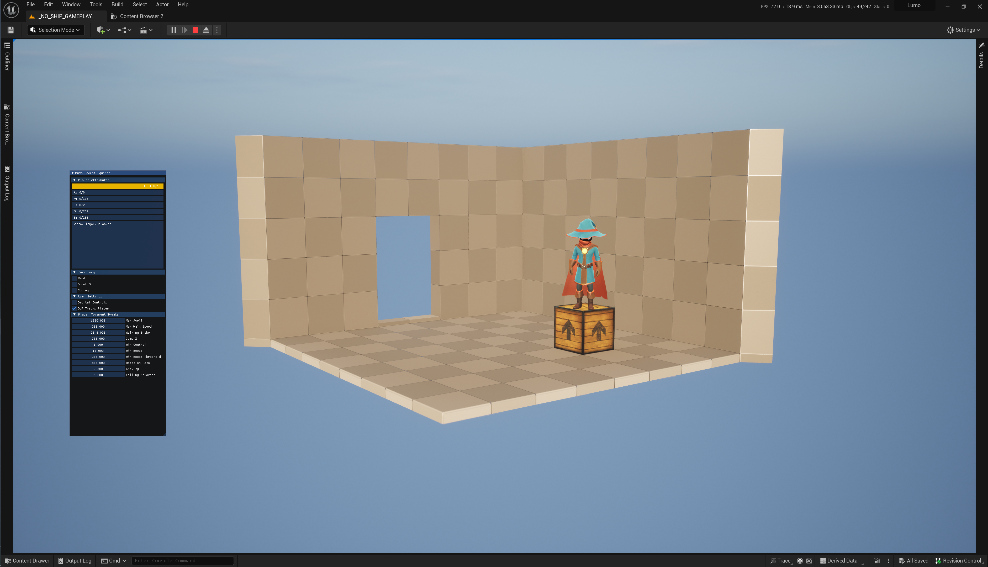 Implemented the basics of the Jump Box. It's got a new model and slightly improved textures. The core functionality is in, but it needs a good test. I have a plan for the VFX -- I'd like to use the dissolution materials and Niagara Emitters from Maenhir to make it disintegrate -- but it's been a couple of years since I looked at that stuff.