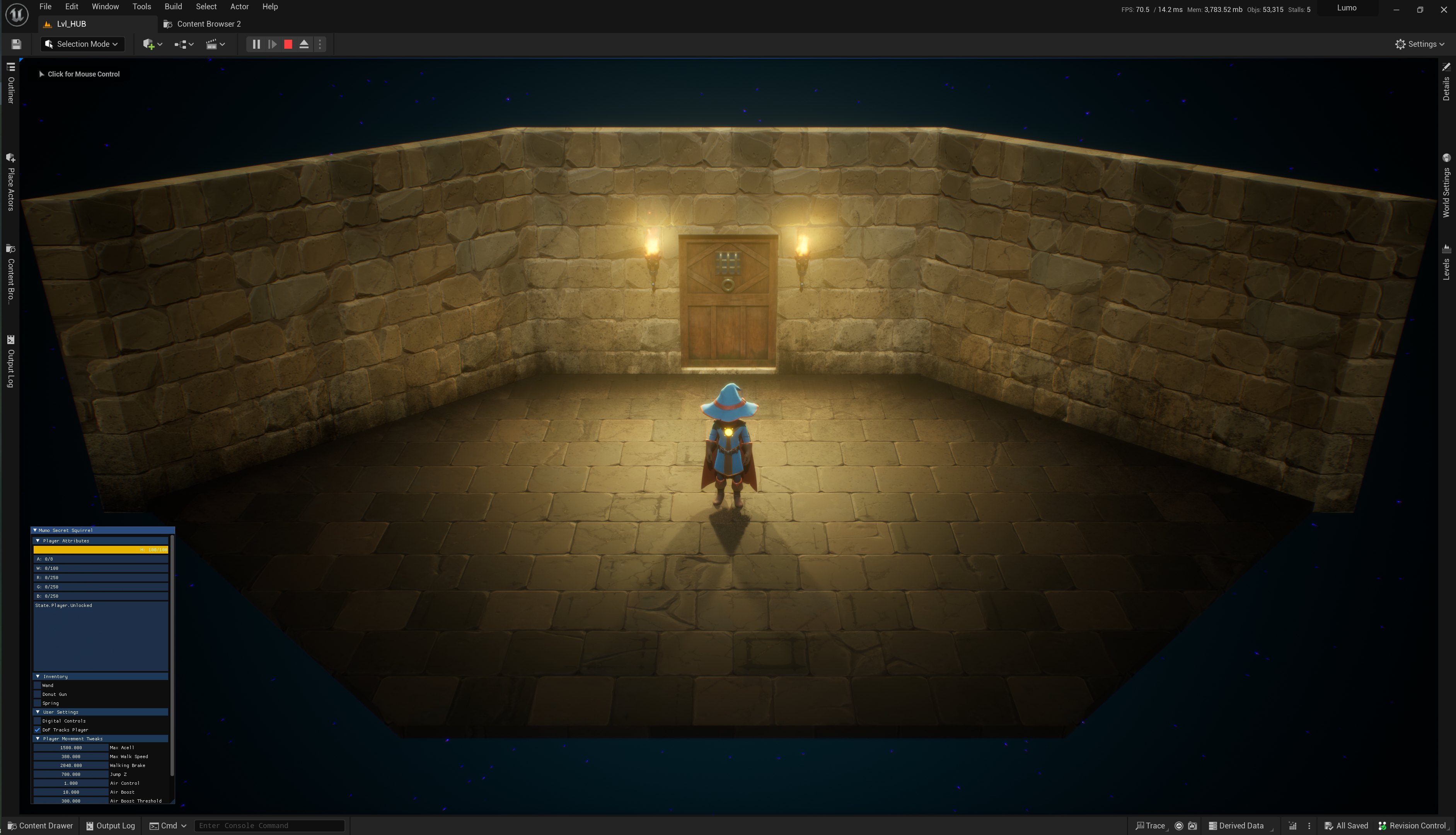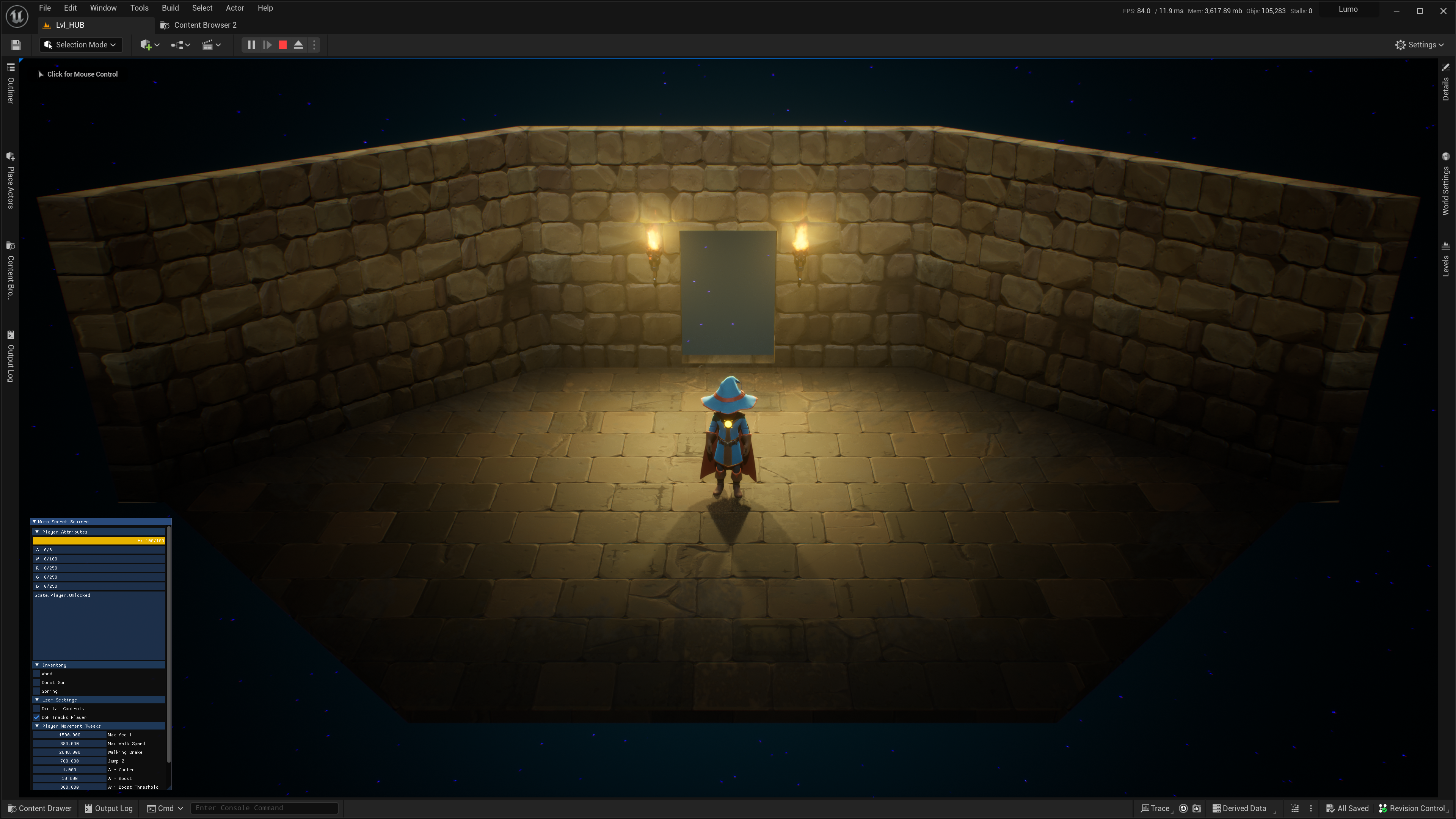 Getting closer to nailing Zone 0. Remade the door from the first game, fixed up the wall texture so there's less gap between the stones, cranked up the bloom, lowered the volumetric fog, tweaked the lights, and made a big collection of dirt, crack, and edge wear decals.