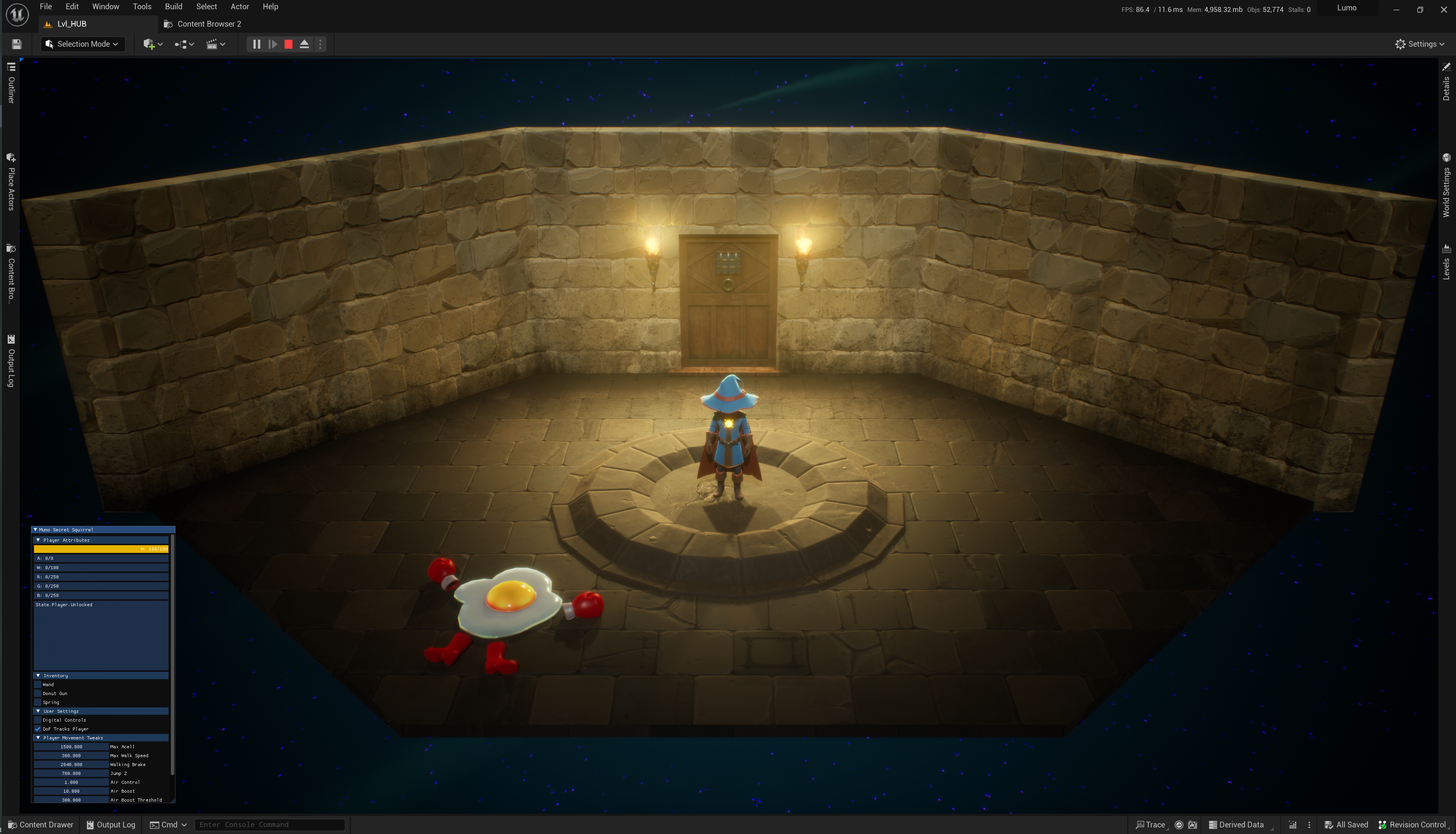 Nearly done with the spawn room. Added a smashed Dizzy, a ‘Northern Lights’ wisp effect to the background, a remix of the plinth from the first game and settled on something I’m happy with for the lighting. Also tweaked the run animations, again.