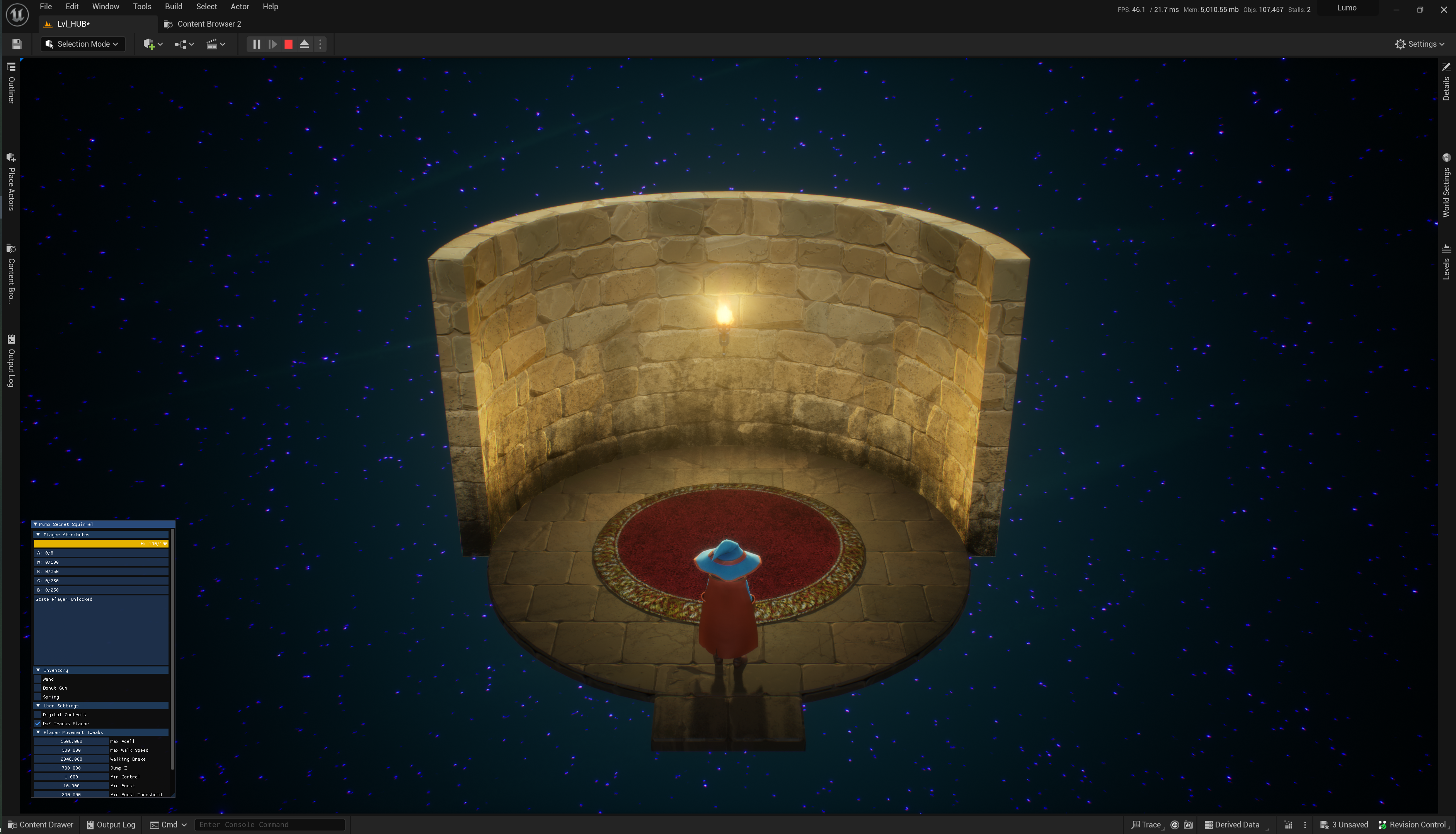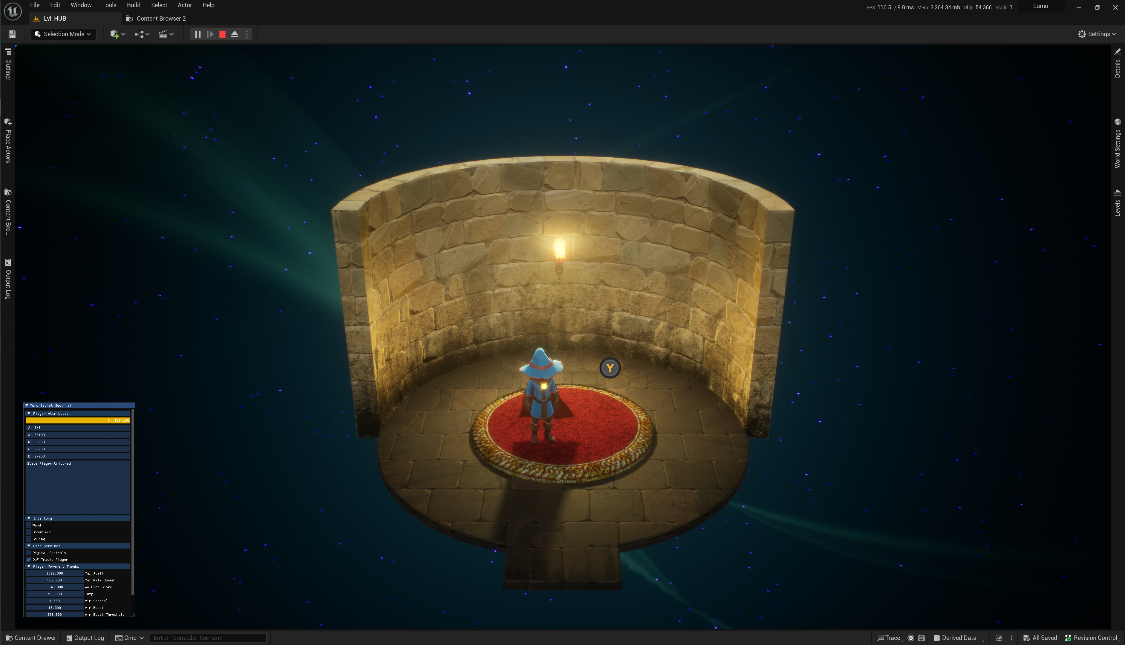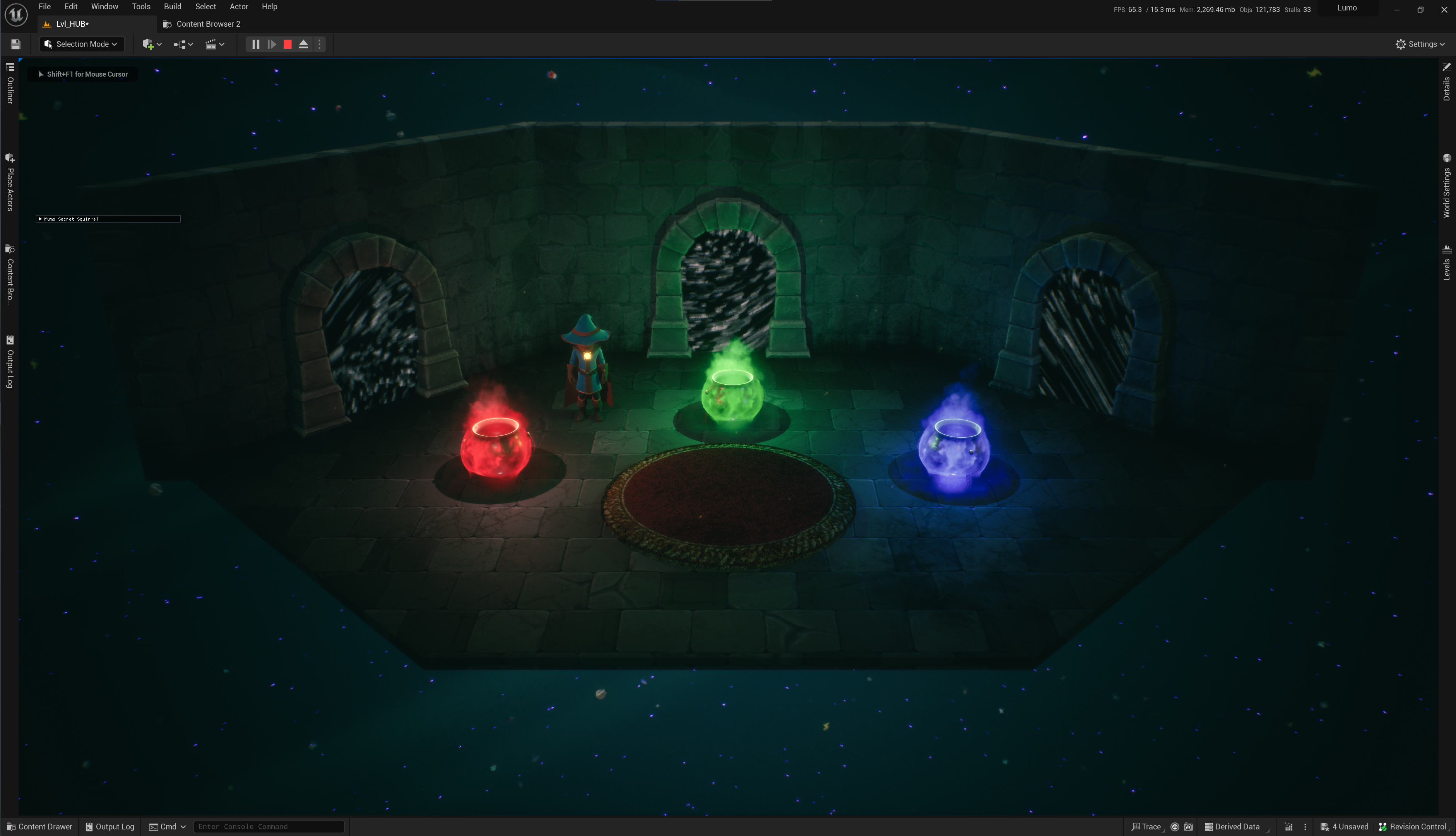 It was all about the Cauldron room, today. This room leads to the playable zones, and it’s the Wizball nod. The player will come back to it (hopefully) with colour for each Cauldron. Ideally, this zone will reflect progress back to the player, probably by becoming more colourful, but that’s a job for another day.