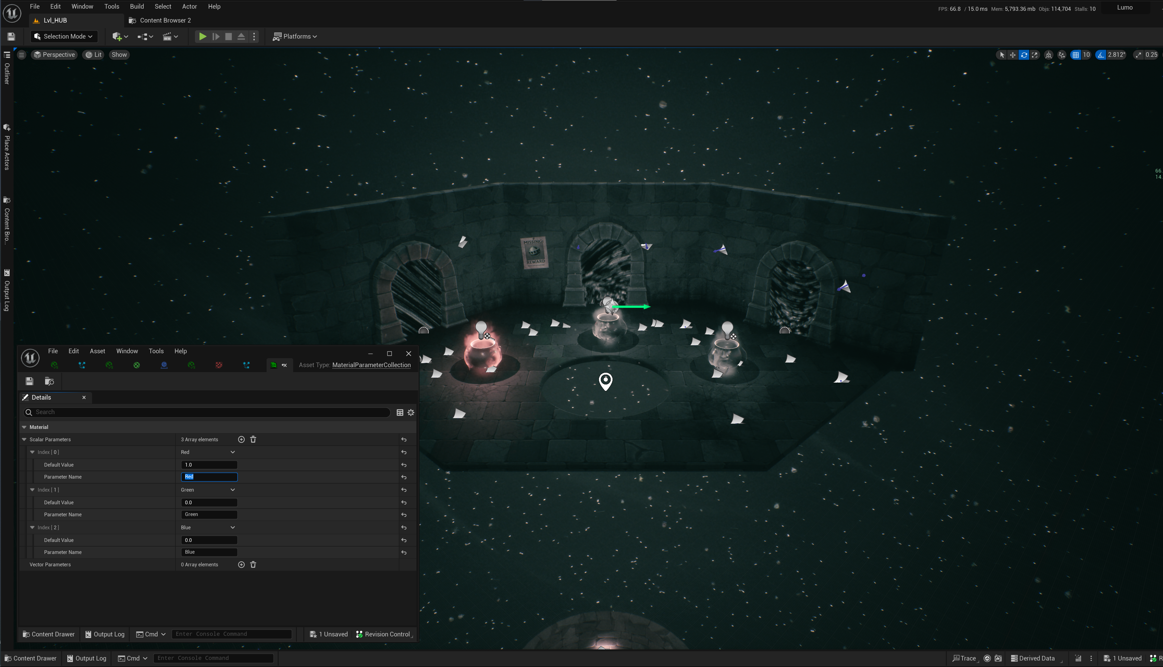 Wrote a post-process material that’ll selectively desaturate the screen. I’ll be able to reflect the player’s progress by bringing primary hues back in, each time they re-enter the zone with paint for the cauldrons. Was it paint in Wizball? You can tell I never had the, ahem, manual for it…