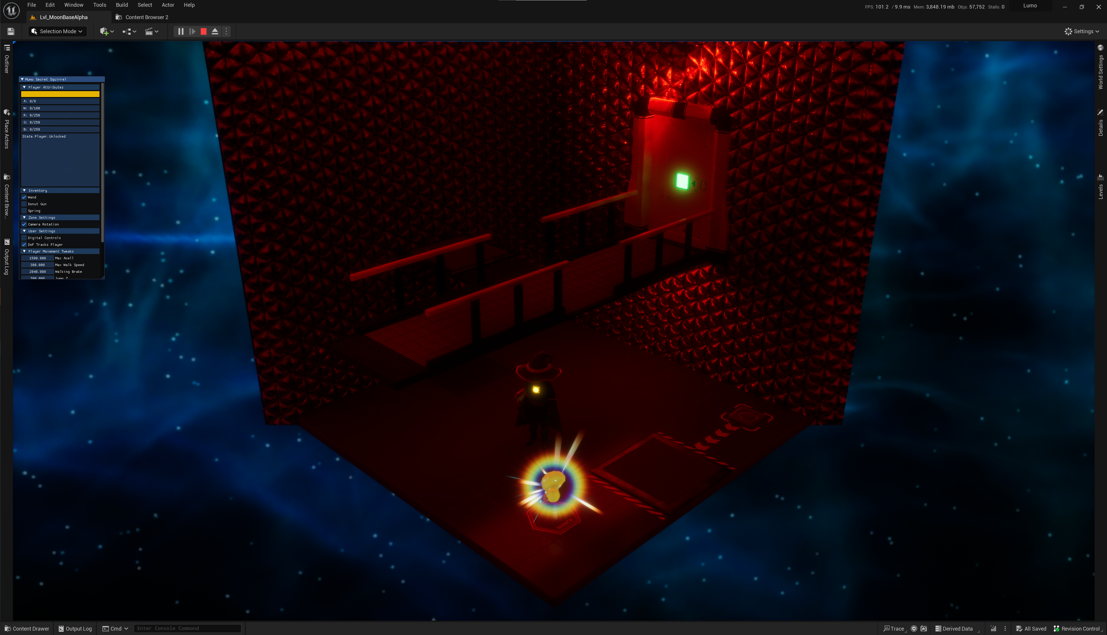 The rooms in the first game were stateless. This was a side effect of them being unique scenes. When you entered them, under the hood a new scene loaded, and as a result everything was at the default position. Objects tied to in-game events polled the global state – a load of booleans (true or false values), for questions like: “Has Player Done X” – and then sorted themselves out accordingly, mostly by deleting themselves, but occasionally by moving to their “final” location.