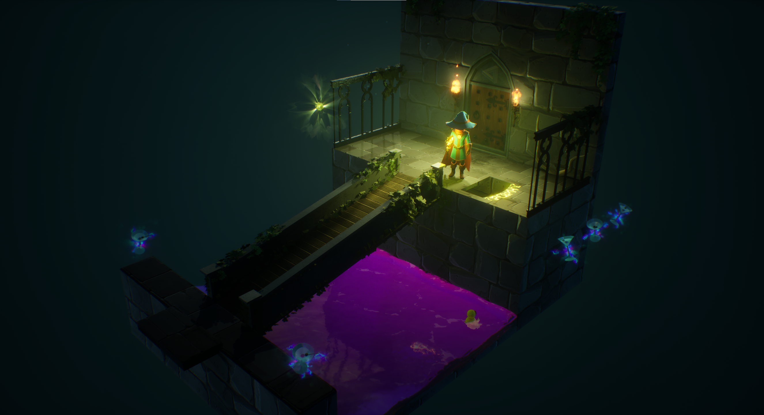 Finished the archway, modelled and textured the door, added a new particle effect to the teleports in the Hub level, and made a start on the VFX for the Wand Charge effect. (I might add a couple of fire flies to it, they were kinda cute in the original game).