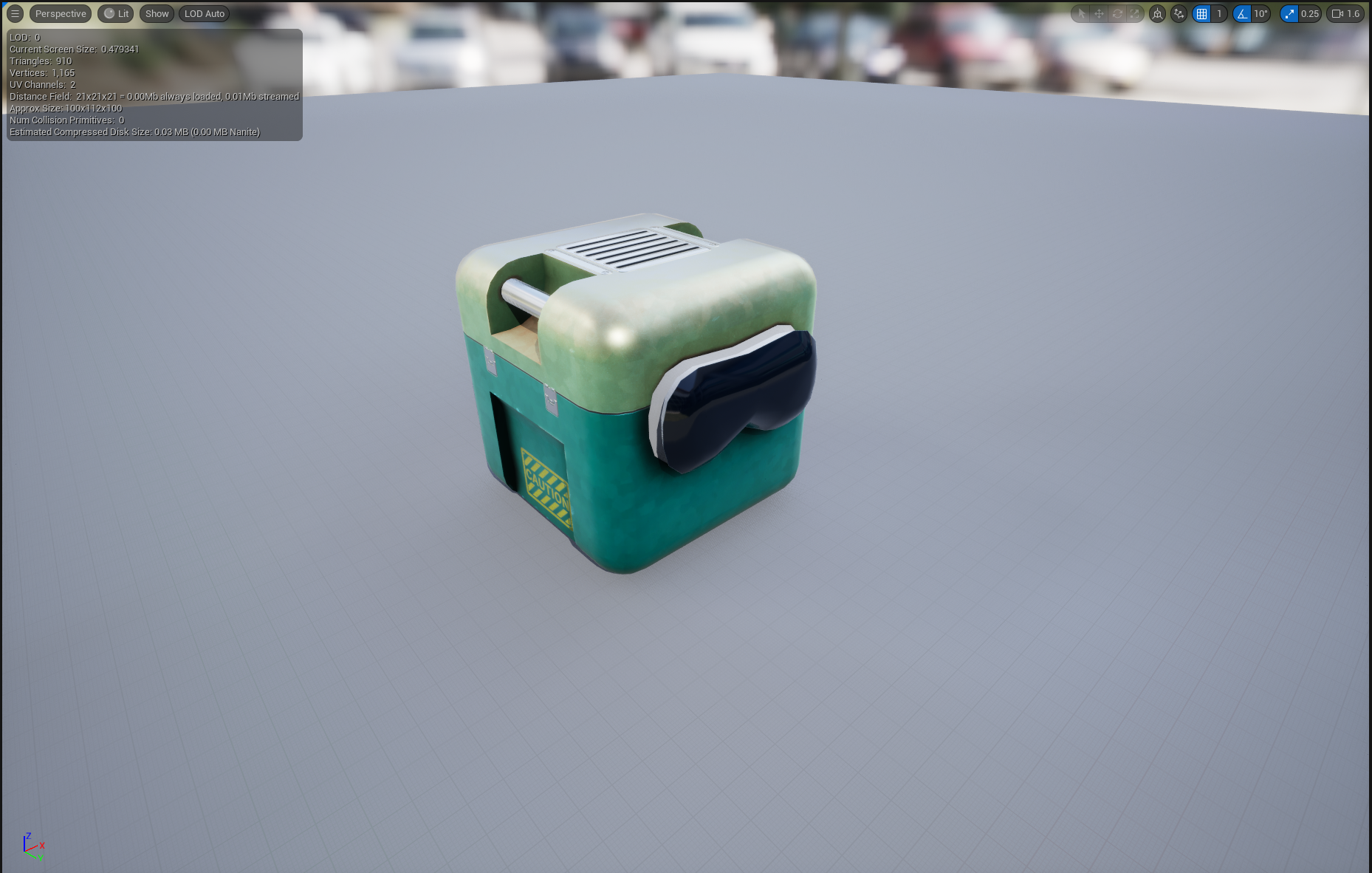 Fixed a couple of setup mistakes that I made yesterday, then modelled and textured a “Sci Fi Love Box”. This one’s going to have little VR goggles for eyes…