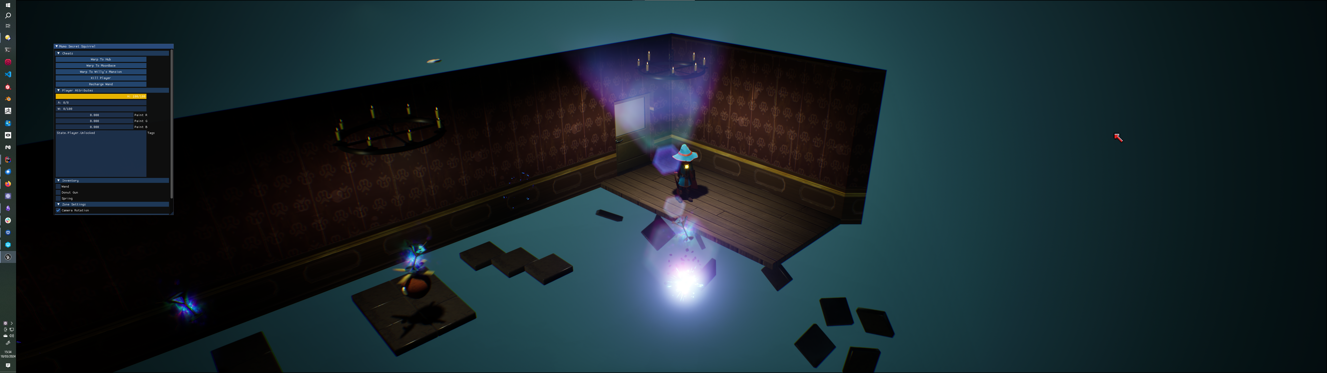Built the second nightmare room, created a little flying NPC – based on the one in Bob Wakelin’s Head Over Heels key art – and tidied up the razor blades. They now have a nice impact effect, and explode into pieces.