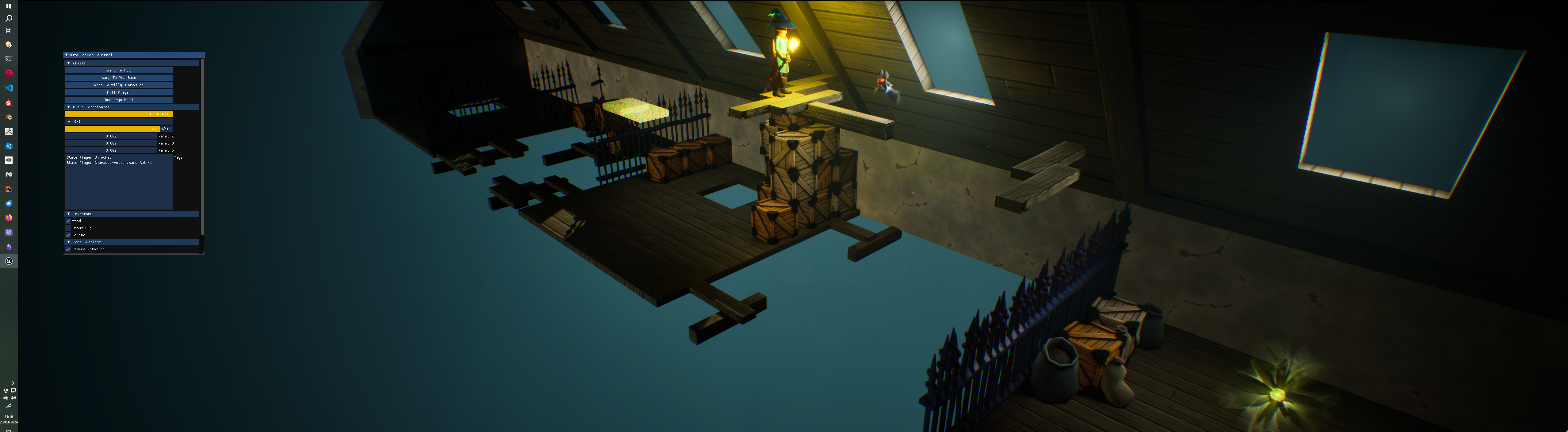 The ceiling has some platforms you can double jump onto if you have the wand. I’ve hidden a doorway up there as well.