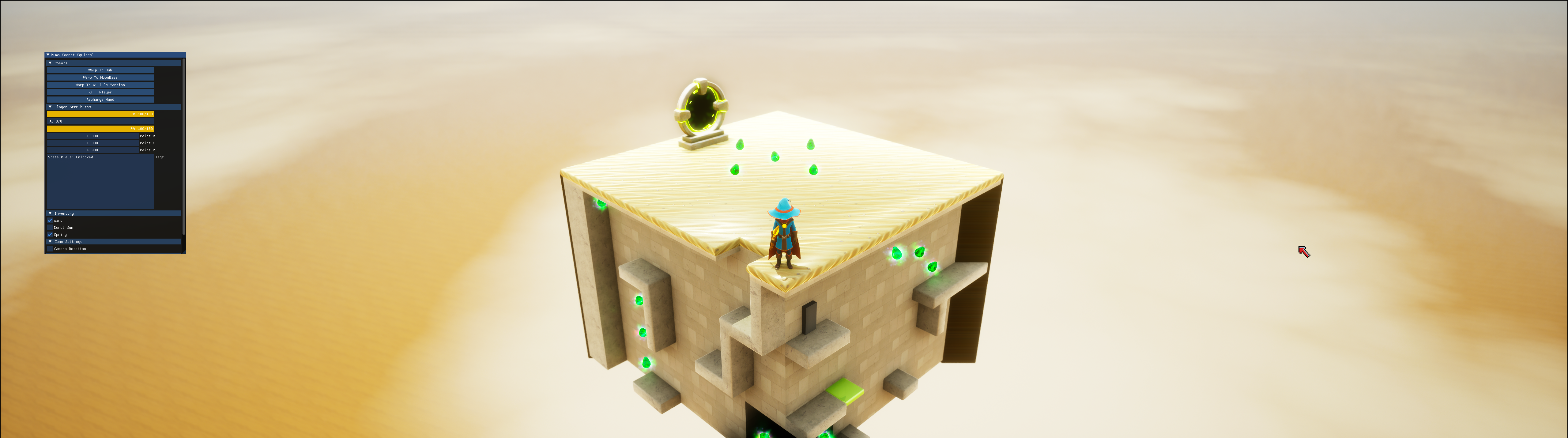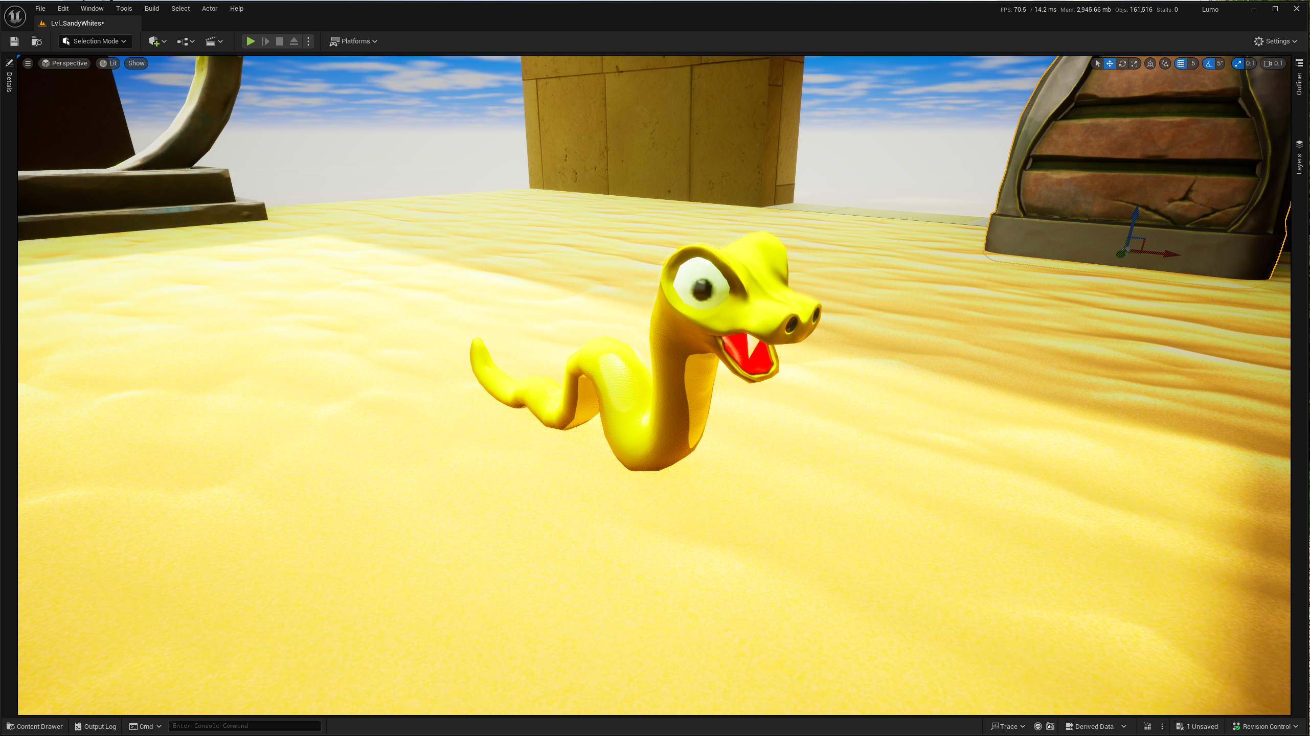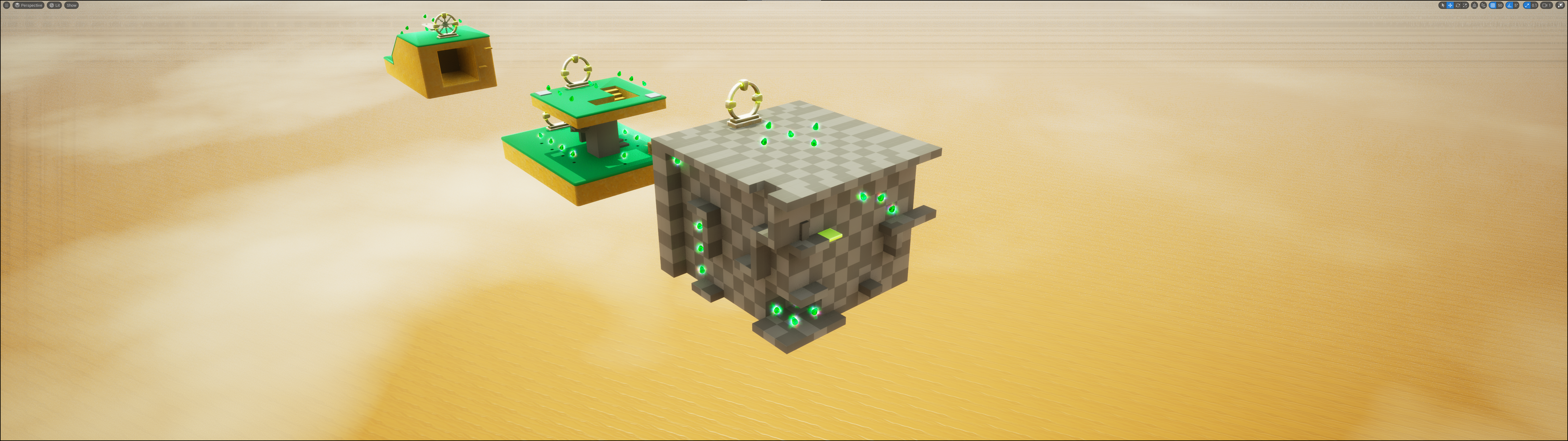 Once the static mesh was cleaned up, I was able to add the disappearing walls, and make a start on the texturing. I’m sticking with the desert/egypt/aztec thing for a bit. Plus, it’s a bit brown, and C64 owners like a bit of brown. Brown and Green. Breen.