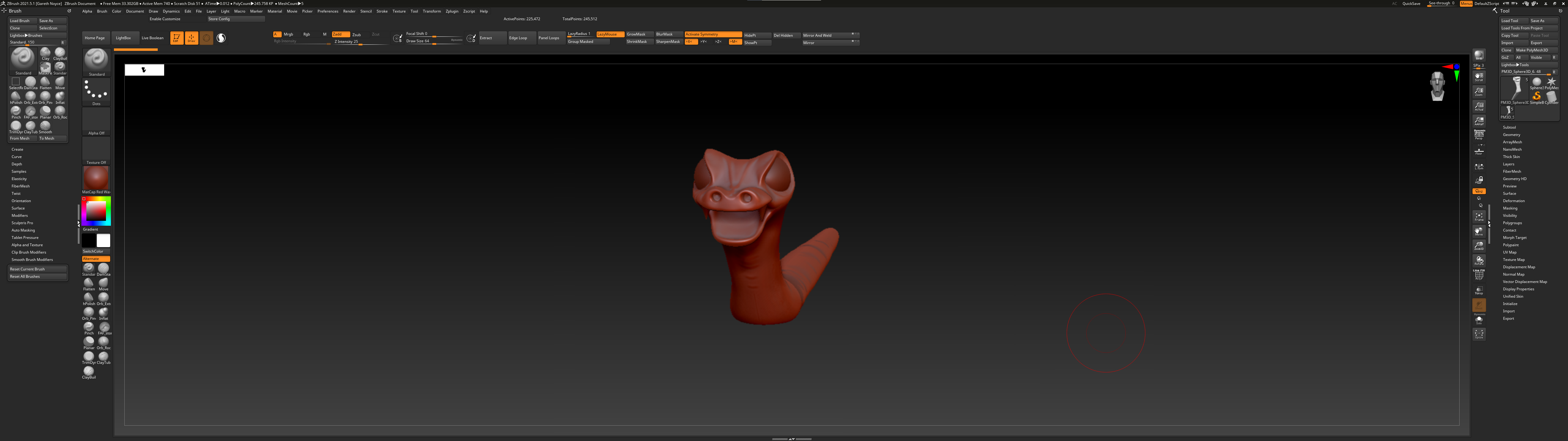 I think I’ve had a reasonable idea for showing the room rotations again, but I need an NPC to play with. So I sculpted a snake. It’s loosely based on the Pygame logo that I made 20 years ago (which I think they’re still using, or at least, an up-res’d version of it). Not sure that I can get away with having a SNES joypad in its mouth, but I guess that depends how big it is on screen. Anyway, I need to remember to throw this over the fence to the Pygame crew. They might find it useful.