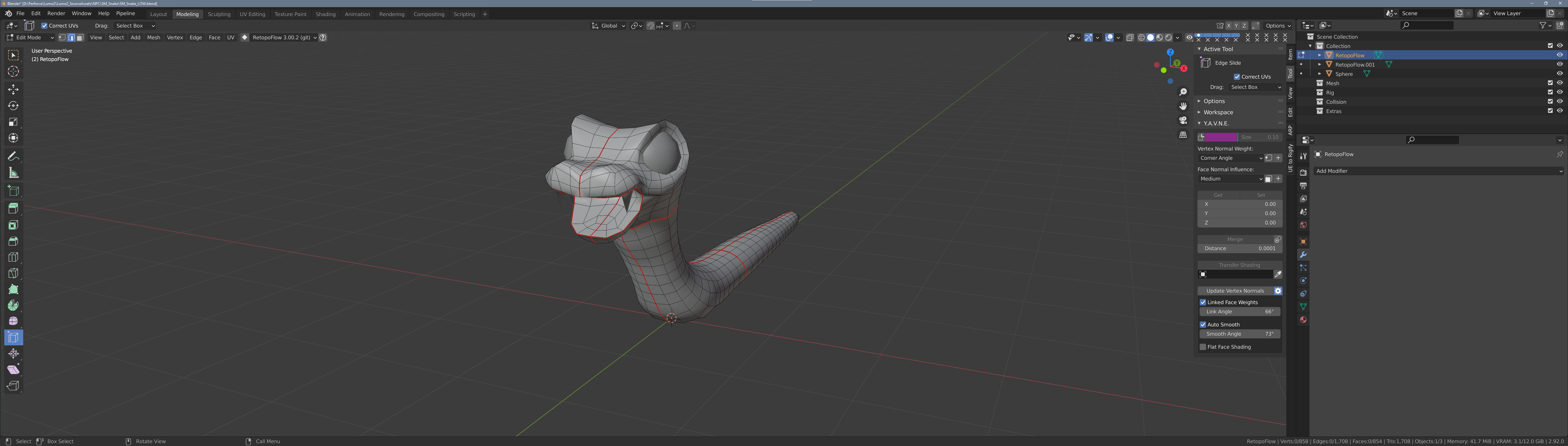 The Pygame snake’s textured, and I’ve done animations for walk, idle, and dizzy. Had an abortive attempt at setting the character up with root motion, but I think I should have set Blender’s Units to 0.01 before I added the skeleton. Whatever I import into UE flies off into the distance whenever it moves. Me so good at this.