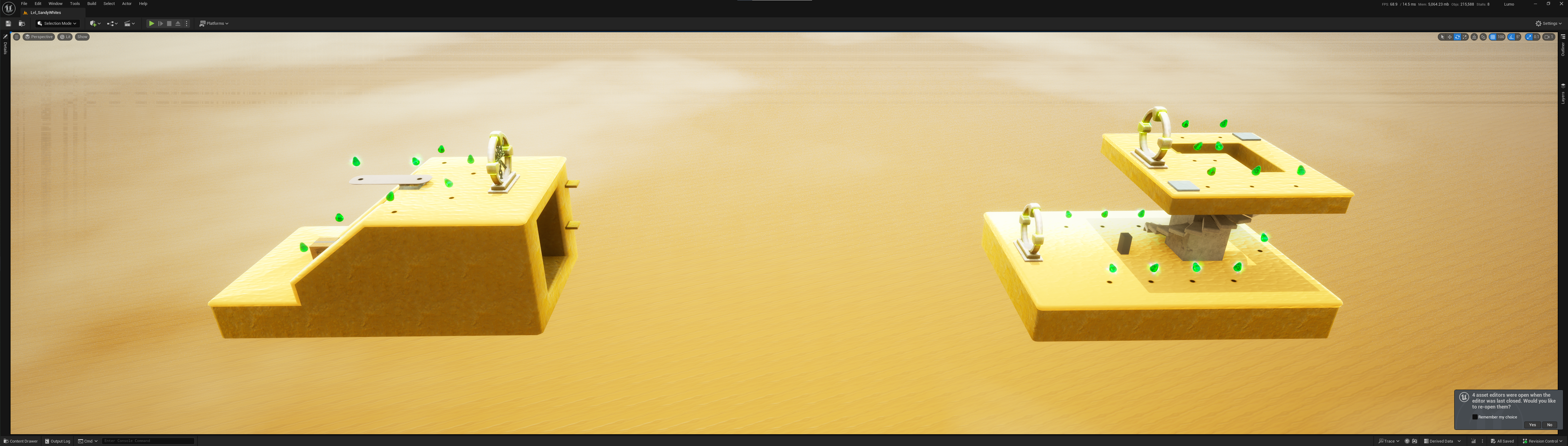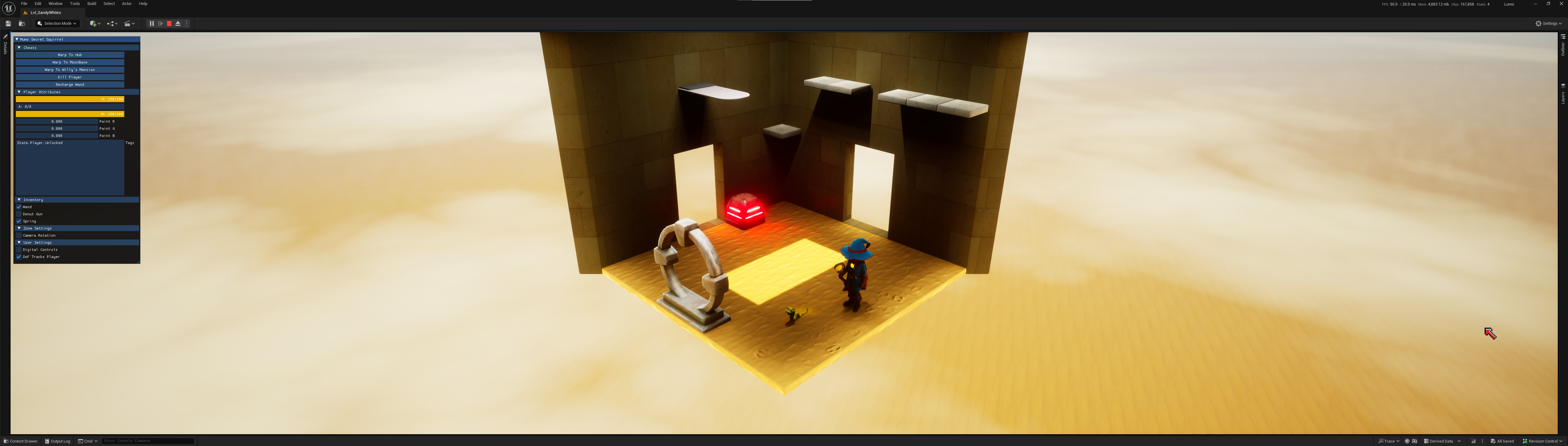 I also added foot-fall particles, and little decals under the player’s feet that leave indents in the sand: