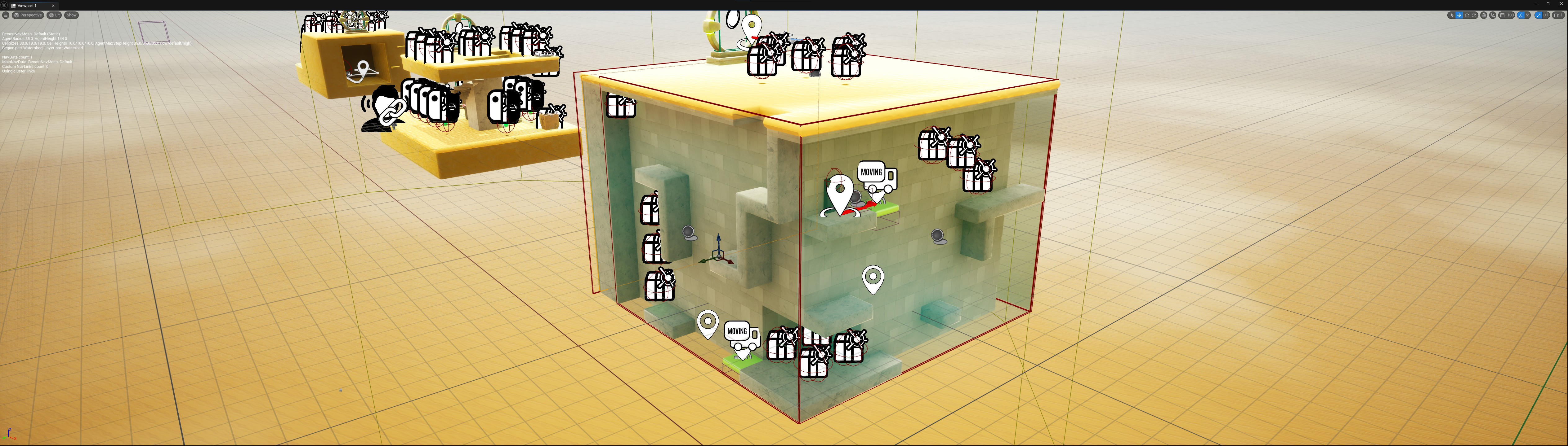 I’ve put Space Toms at the end of Sandy Whites, but as is typical, if you turn your back for a minute, everything breaks. All my floating NPCs were too high, and worse, the sky-light now has a bug where it’s not rendering on the right-hand side of my ultra-wide. This is baffling, and I have no idea what’s causing it, so I’m not even going to waste time trying to look into it. Definitely wasn’t doing that on the previous engine version…