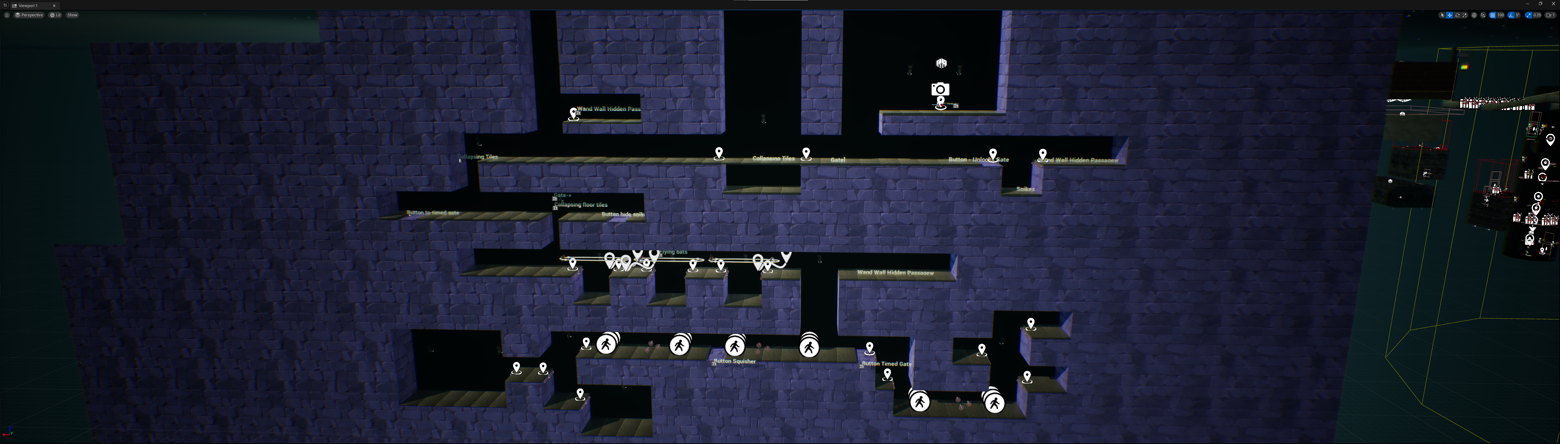 Made the spikes, push buttons and gates, laid everything out, and hooked everything up. There are wand activated walls leading to hidden areas, some rats running around, and a few bats on patrol. It’s a short little thing, but serves the purpose of getting the player back to The Hall (so they can exit out of The Backdoor), hopefully with a smile...
