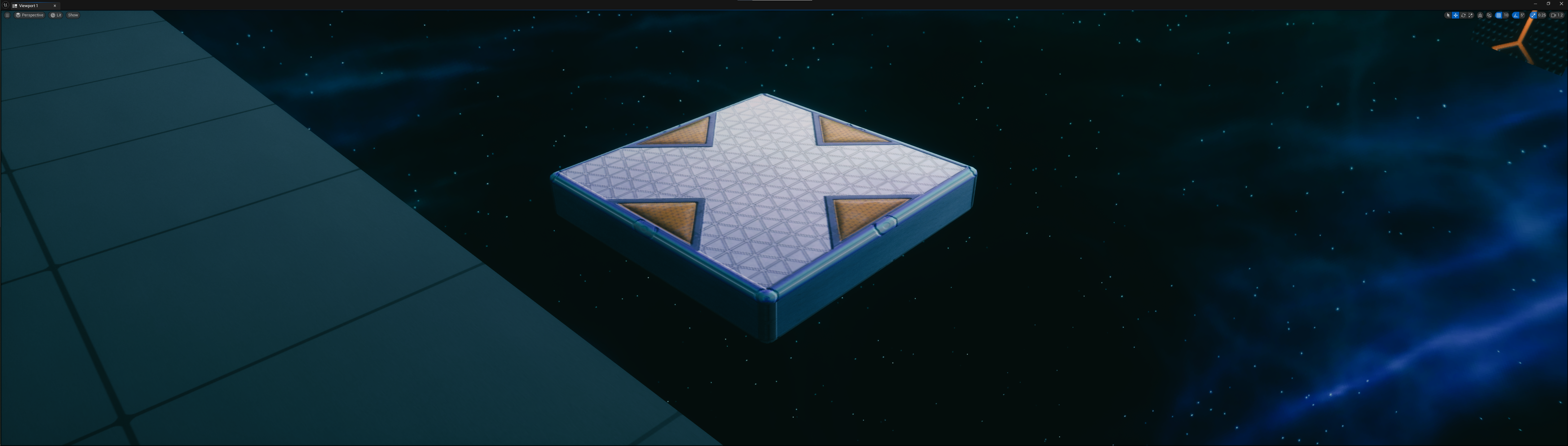 The barriers at the ends of the room have collision at the bottom, which will automatically stop the platform, but the area in the middle doesn’t, so you might fry yourself accidentally. I quite like the way the barriers fade in and out as you enter the room, but it took me hours to settle on a look that I was happy with. The plasma on the walls of the room is pretty cool, though. That was worth the effort.
