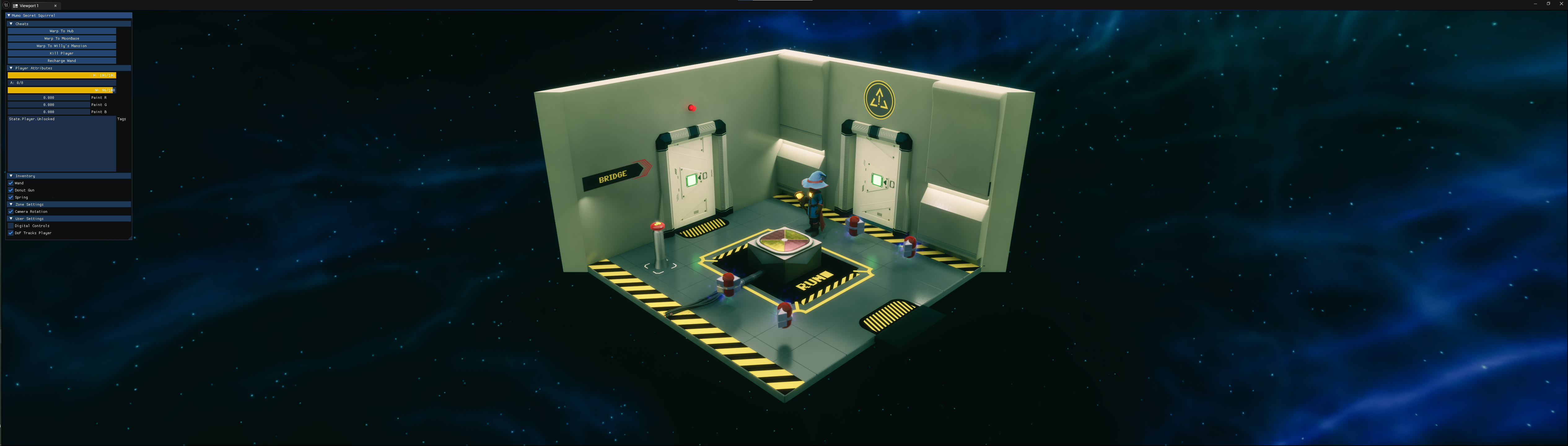 The other, more serious problem, is that most of the time puzzles are entirely bespoke. Custom assets, custom code. Which makes them time-consuming / low bang-for buck. But UE’s a much better environment, and my toolbox is bigger, so I want to get a few in. I’m going to make sure most of them are off the golden path. Maybe a requirement to find the Boomboxes?