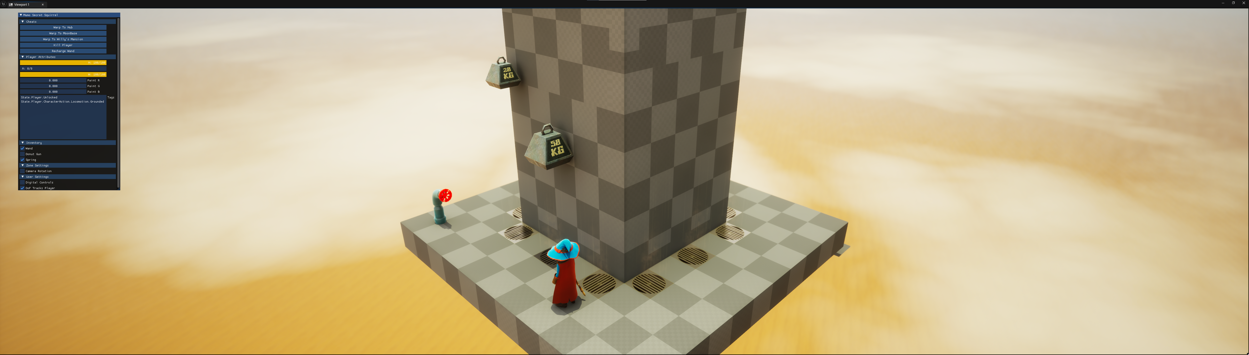 One of the early rooms in the first game required you to push a button, which turned on some fans, which made some boxes float, that you could then use to jump across to a door on the far side. For lols, I thought I’d take that a step further: