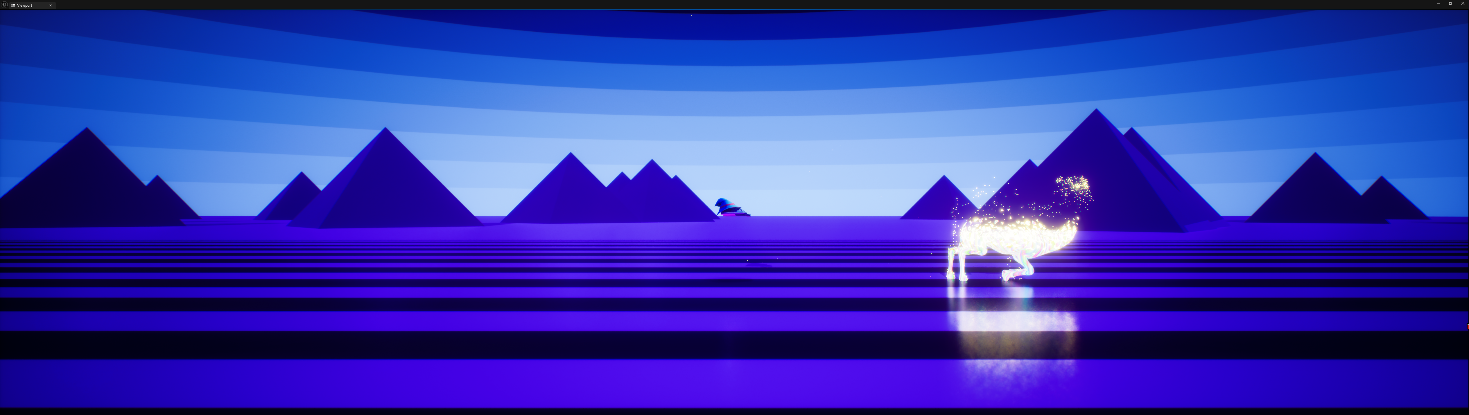Keeping the colour consistent all the way to the horizon was an interesting problem. If the floor is unlit (with a smidge of emissive) then there’s no problem. But unlit doesn’t get shadows and reflections. If the floor’s lit, then the further away it gets, the more of the sky box (blue) and ambient lighting (white-ish) it picks up, presumably because of Fresnel. But I landed on a nice trick, I flipped the problem. The floor is actually white, the ambient cube in the post process volume (and the main directional light) are both purple. You can see that the floor still gets a smidge of the sky box toward the very far end, but it’s much, much better. Another one for the toolbox.