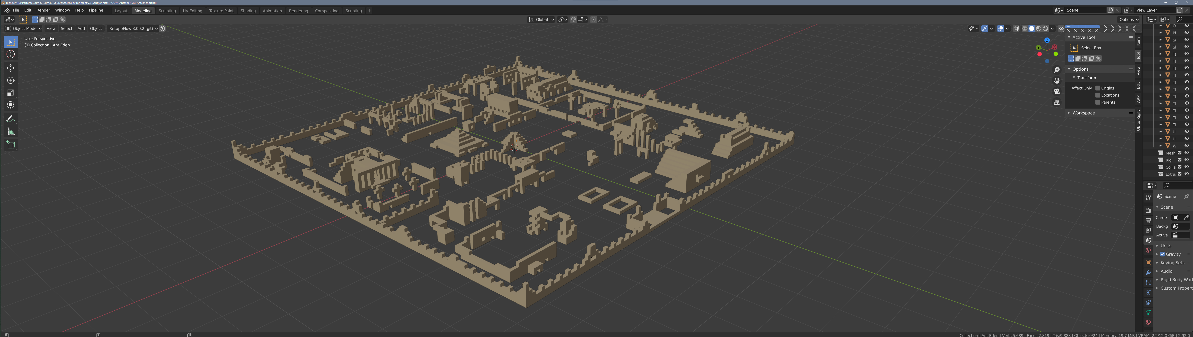 So I grabbed the model. It needed a fair amount of cleaning up – every block was a teeny bit larger than a unit, not sure why – but it saved me a lot of time, and I ended up with the full map as a nicely broken down model, that I could break apart, remodel, and use as a template.