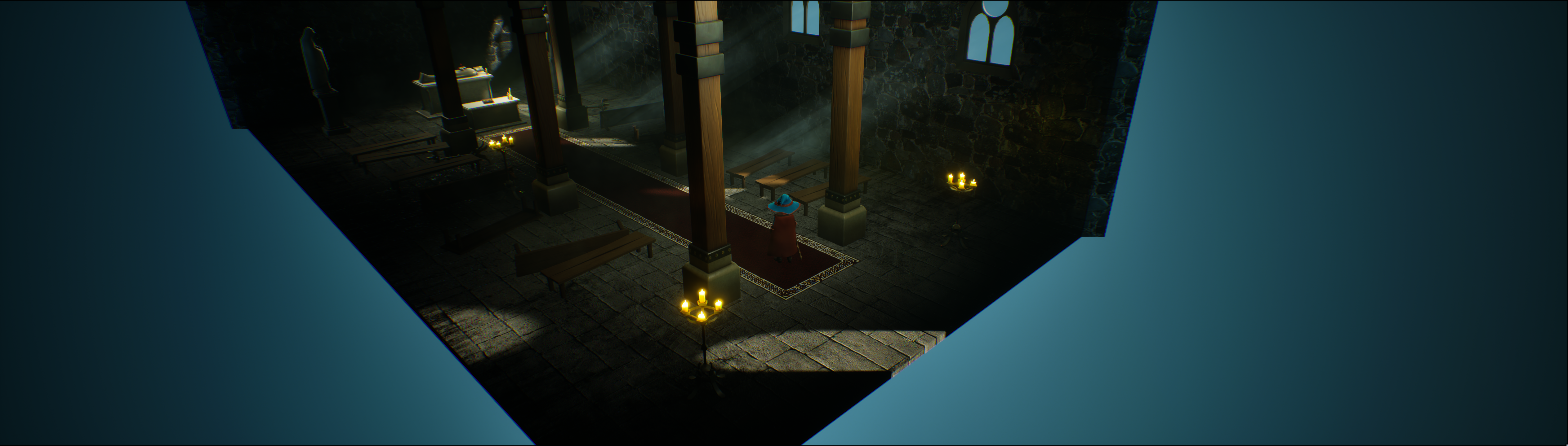 Made really decent progress on the Forgotten Abbey. Modelled the entire room in Blender, made a custom shadow box, new materials for the assets I rescued from Lumo, some fake god rays and new window frames. The lighting’s not quite there, but I’m happy with the mood. Dark and unused was the goal, and this feels pretty close.