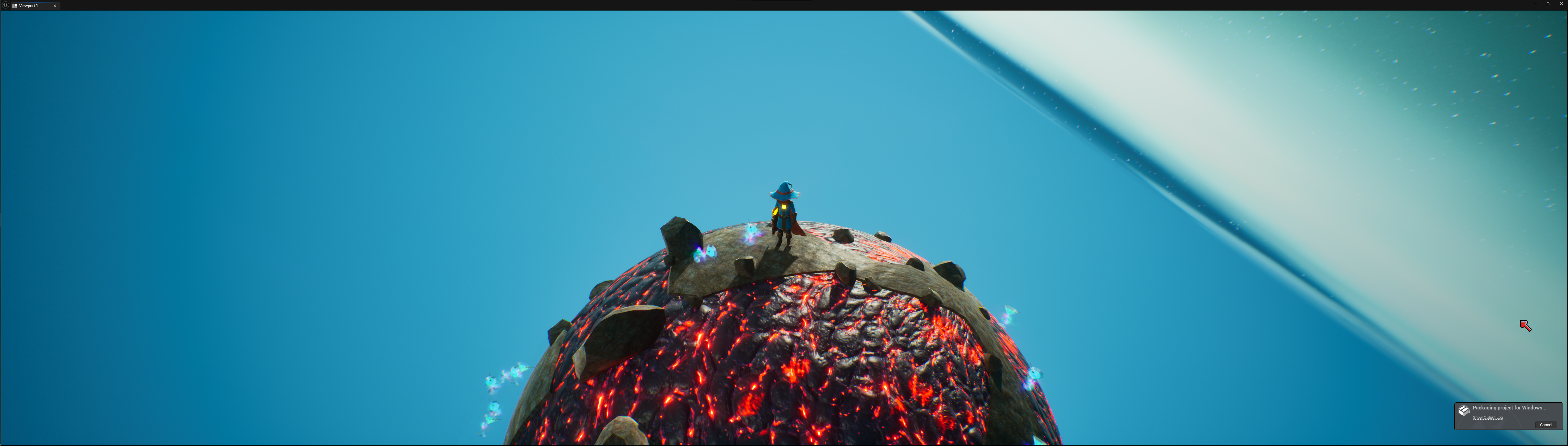 Removed the placeholder for “Ball Room West” and replaced it with a little lava ball. I had much bigger plans for this – a few enemies moving about, fireballs, etc – but it’s such a pain in the arse to place things on and around the sphere that I gave up. I’d need to write a couple of editor extensions to do it properly, and nah, not at this point. Filled it with paint and moved on. Meh.