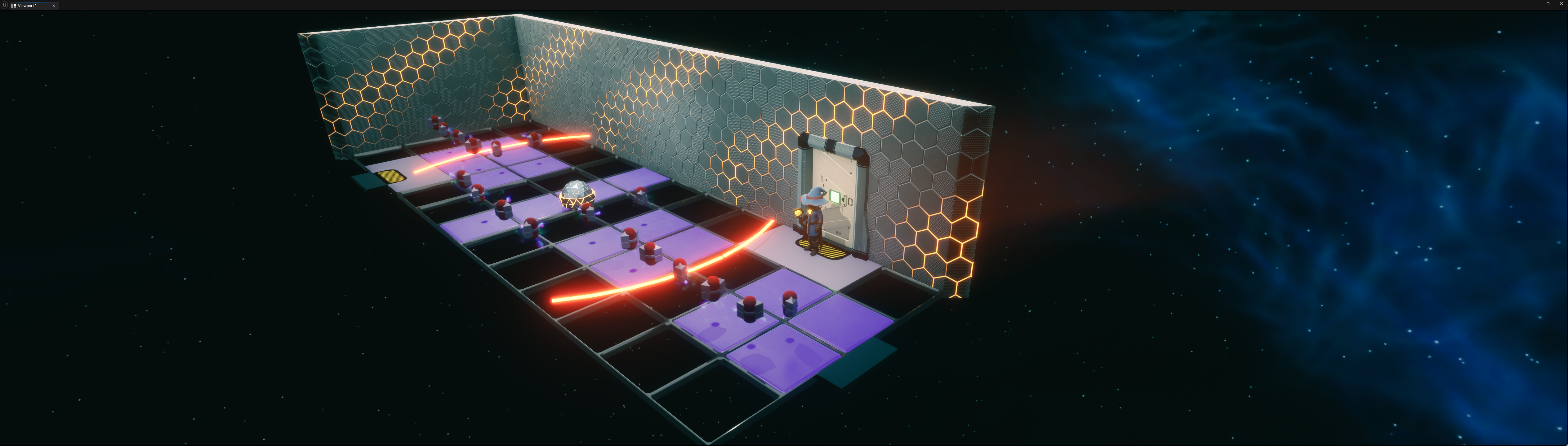 Added another room to Moonbas: floor parts that appear/disappear on a timer, and one of the circle laser emitters, constantly firing. Surprisingly tricky combination, that’s taken me a fair while to balance. But it’s near the end of Moonbas, so I’m allowed some difficulty spikes.
