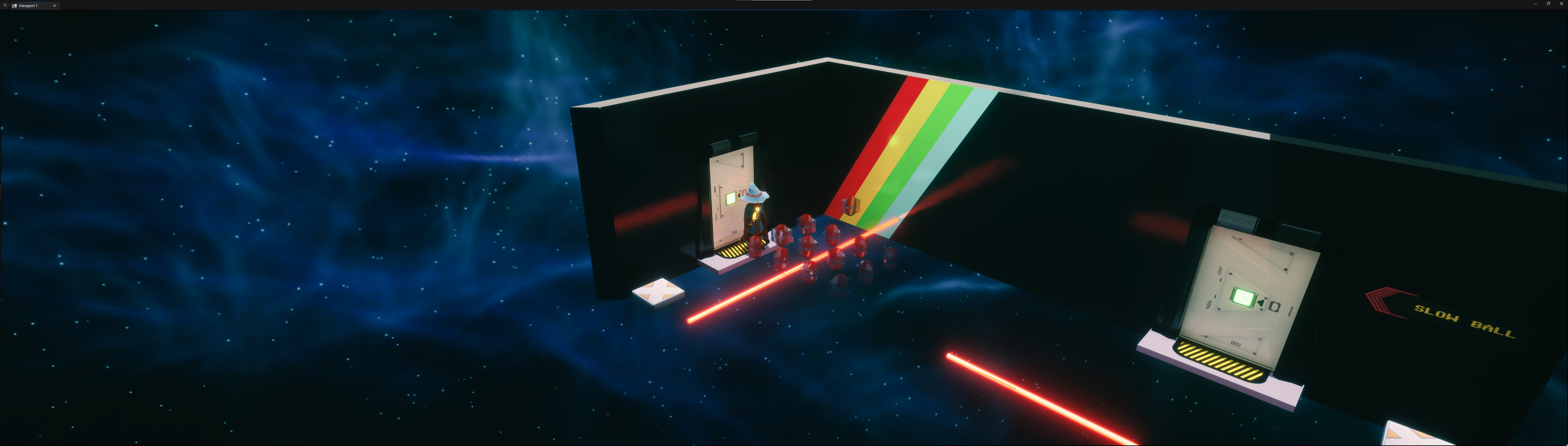 If the panel is rotated, it’ll check for power from the fixed point, and it’ll ask its neighbours if they’re currently powered up. If either is true, it’ll check to see if the two paths connect, and then power up and down accordingly. Far from optimal in terms of how many checks the panels might end up doing between each other, but very clean and readable from a code point of view.