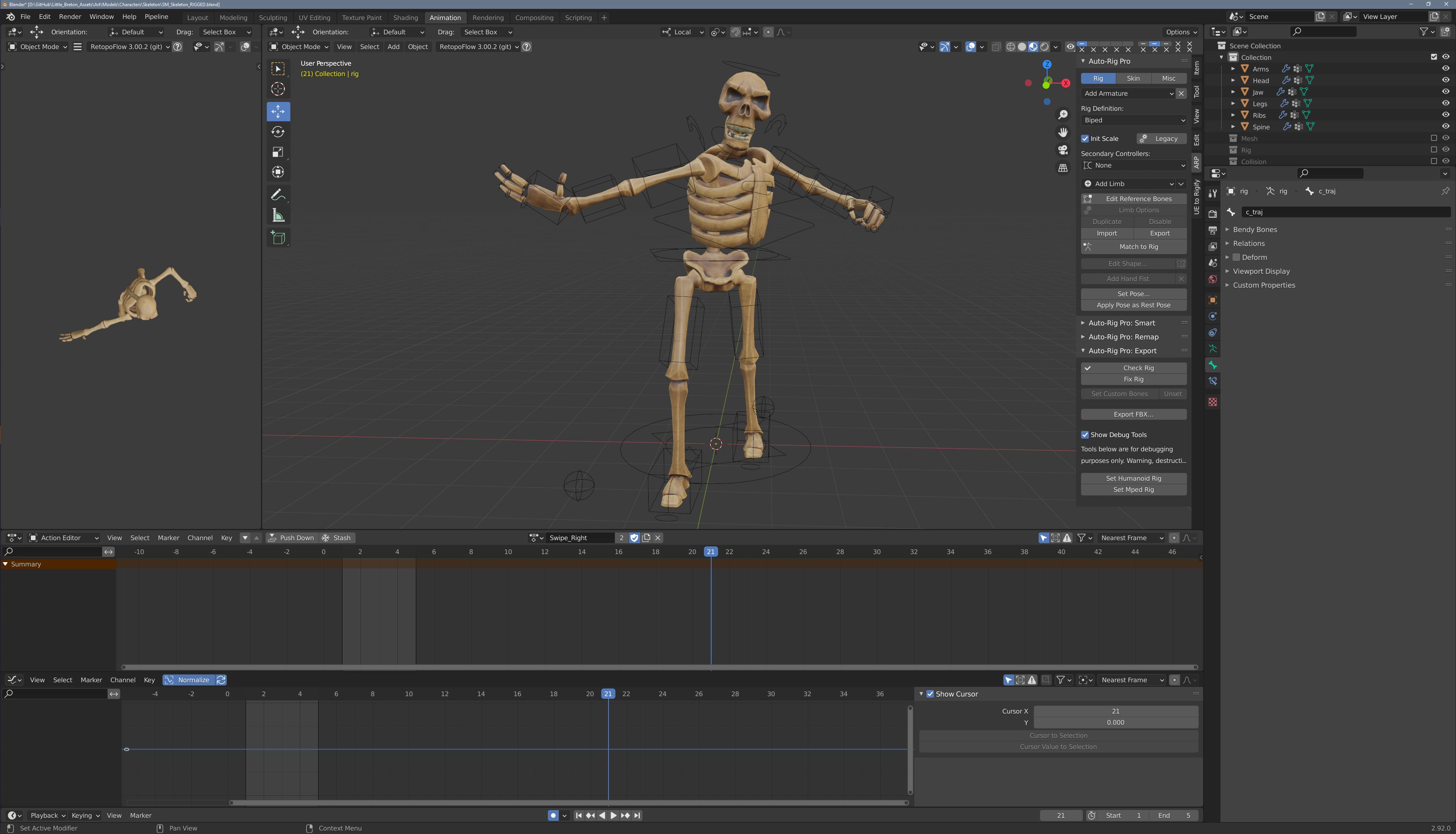 Teaching today, but I got a couple of quick animations done during the evening: A fall loop, and land. Getting ready to rain skeletons in from the sky.